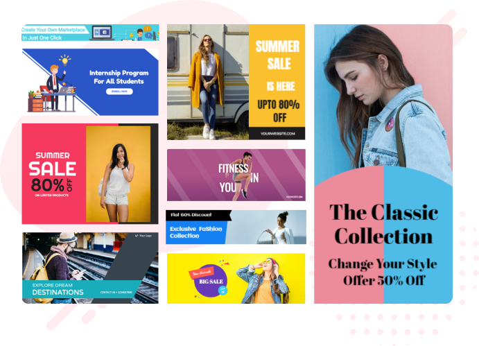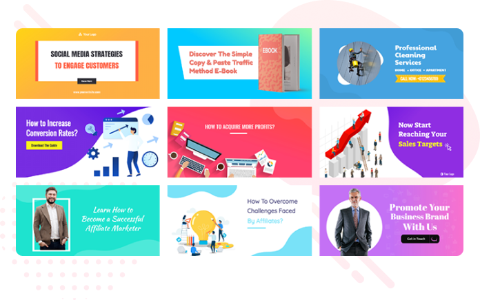 Cipta kesan yang berkekalan kepada pengunjung laman web anda dengan sepanduk menarik dari Editor DesignLaju. Koleksi kami termasuk ratusan sepanduk laman web yang menawan yang akan membantu laman web anda menonjol dan kelihatan terbaik. Pilih dari pelbagai pilihan untuk mendapatkan sepanduk yang sesuai dengan keperluan anda dan meningkatkan visual laman web anda.
